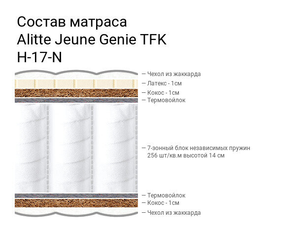 Матрас Alitte Jeune Genie TFK H-17-N, Размер 85х175 см