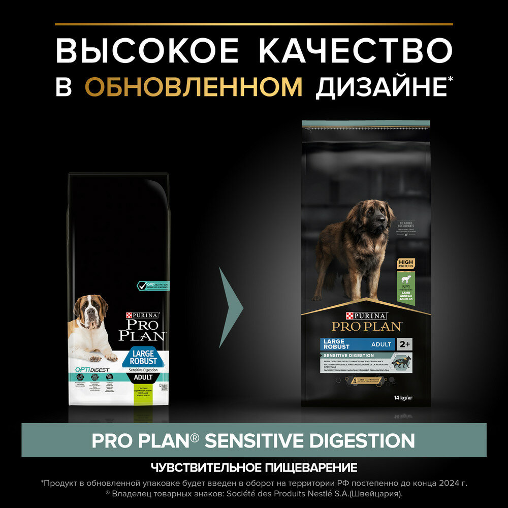 Корм сухой для собак крупных пород Pro Plan Large Robust Adult Sensitive Digeston при чувствительном пищеварении, с ягненком 14 кг