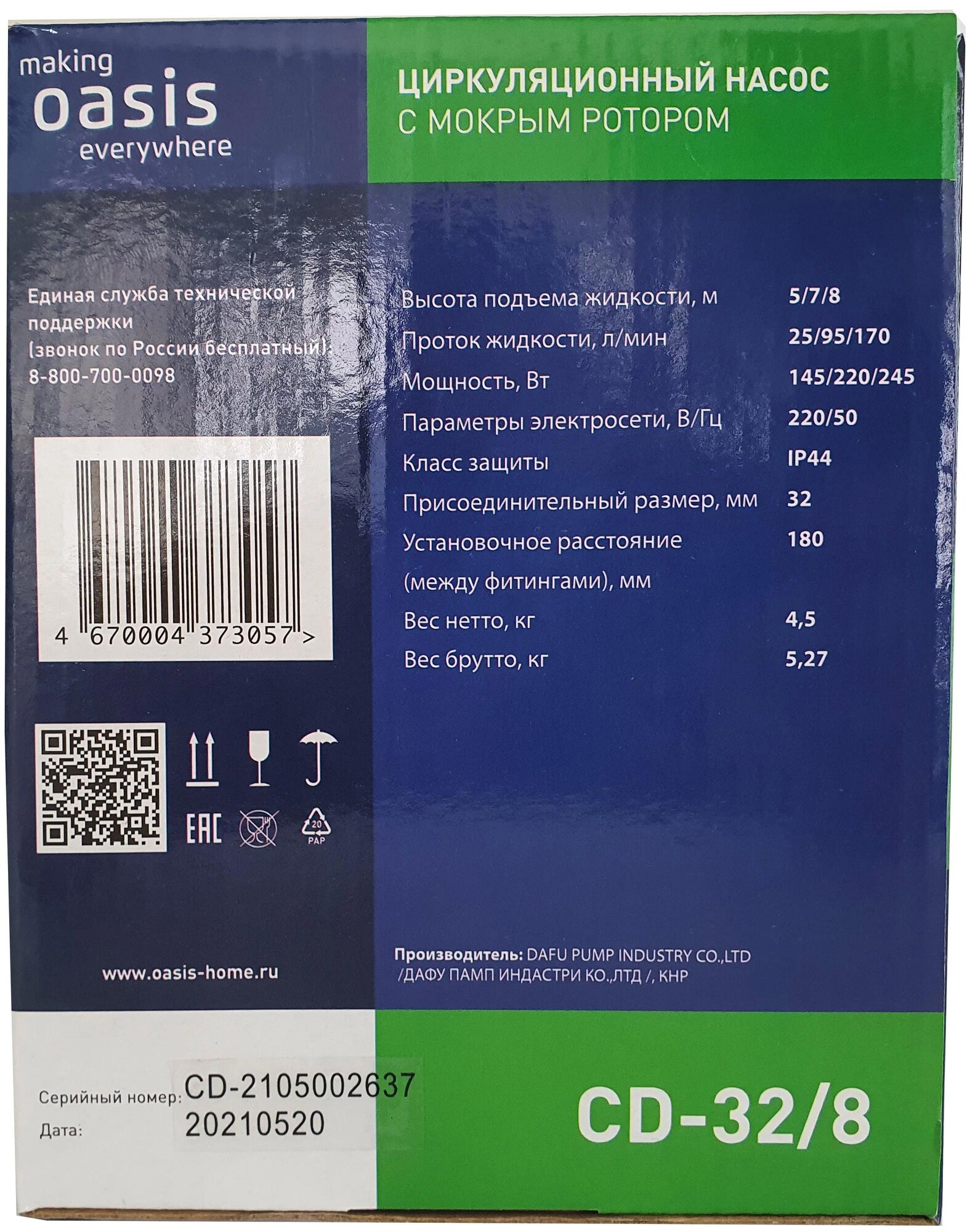 Циркуляционный насос Oasis CR 32/8 (245 Вт) интересное: