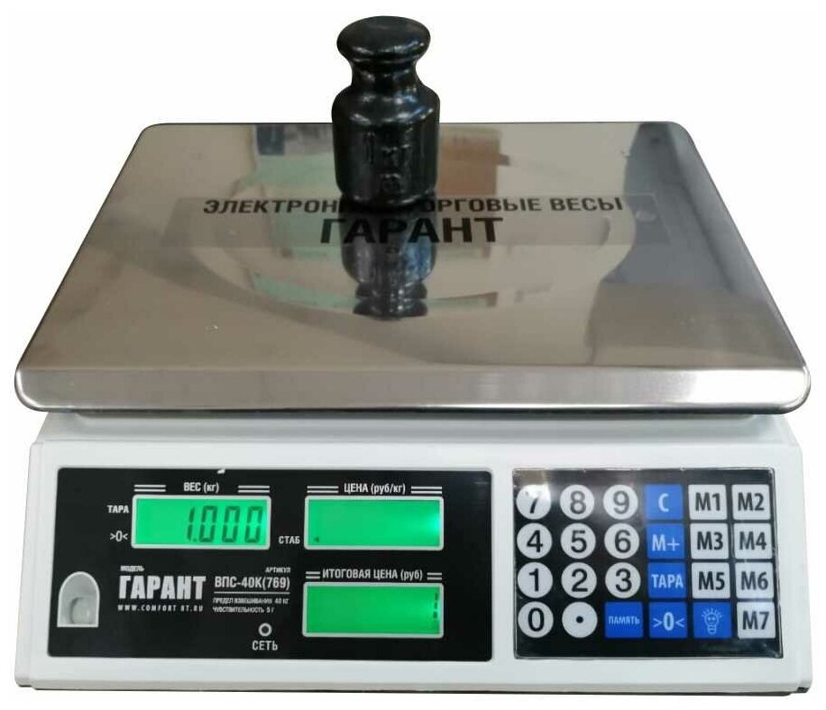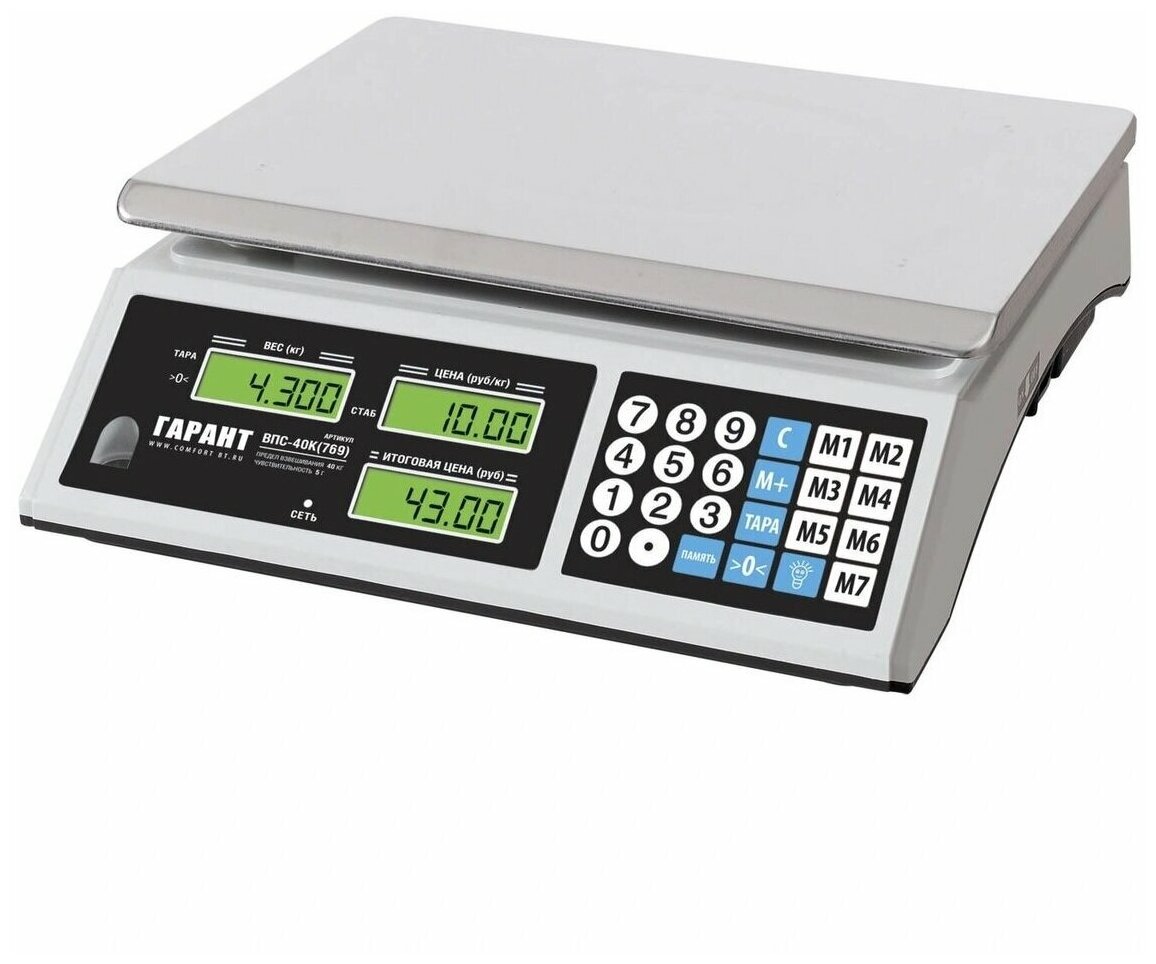 Весы торговые электронные настольные гарант ВПС-40К, 40кг, 5гр, 330Х220, без стойки (для магазина, склада и производства) интересное: