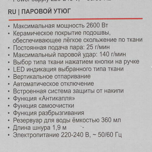 | Мощность | 2600 Вт |