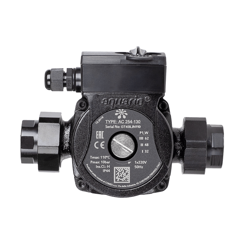 Насос циркуляционный AQUARIO AC 254-130 (62Вт, Qmax:40 л/мин, Hmax:4 м, диам 25 мм, 3 скор)