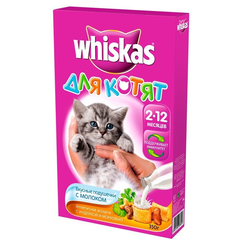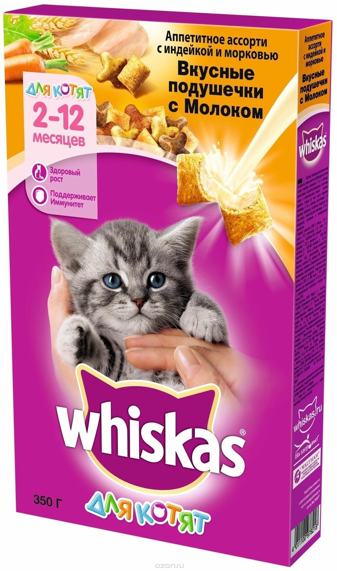 Сухой корм Whiskas для котят, индейка/морковь/молоко, подушечки, 350 г 1144645