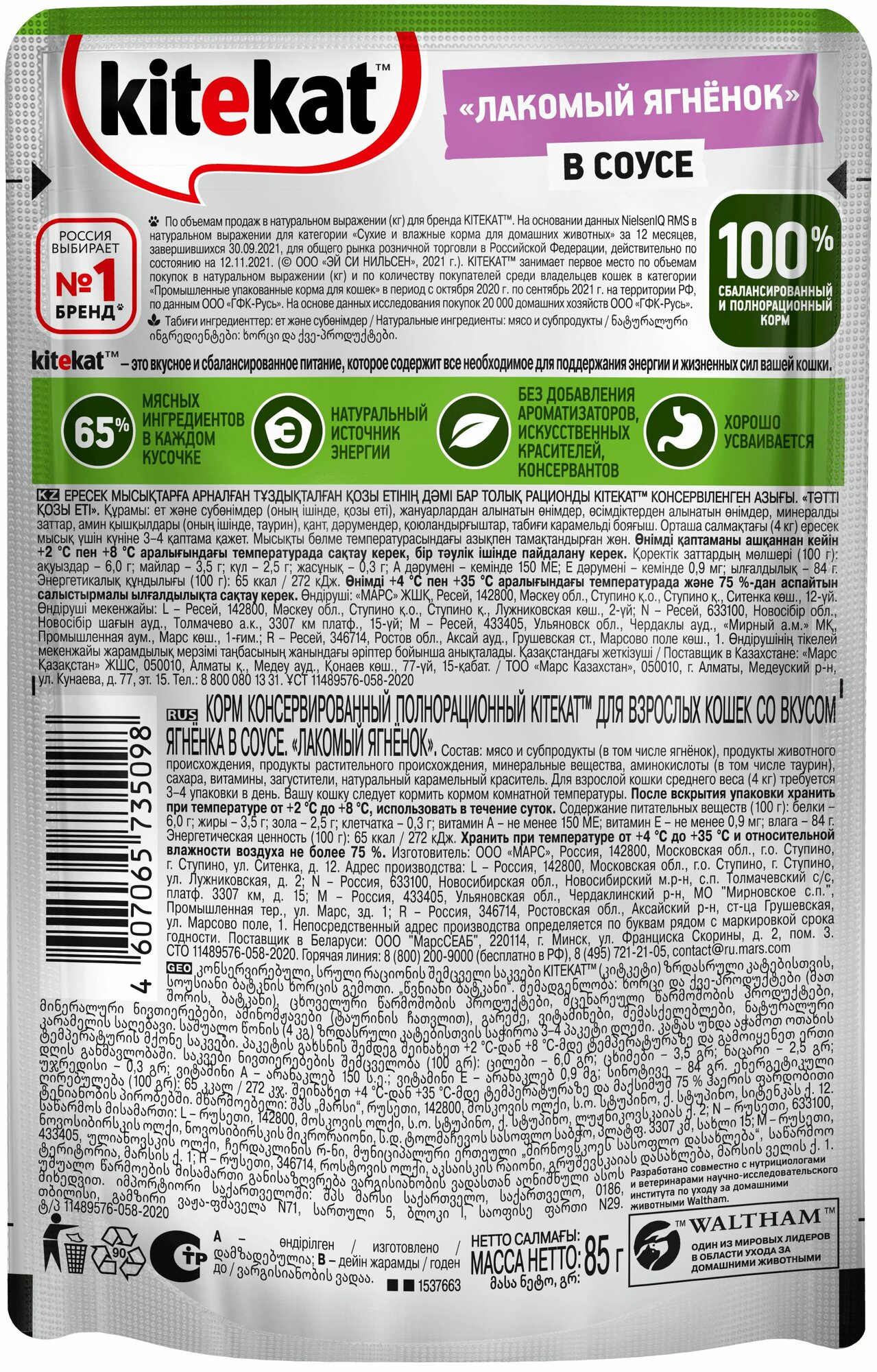 Kitekat влажный корм для кошек с ягнёнком в соусе, в паучах - 85 г х 28 шт интересное: