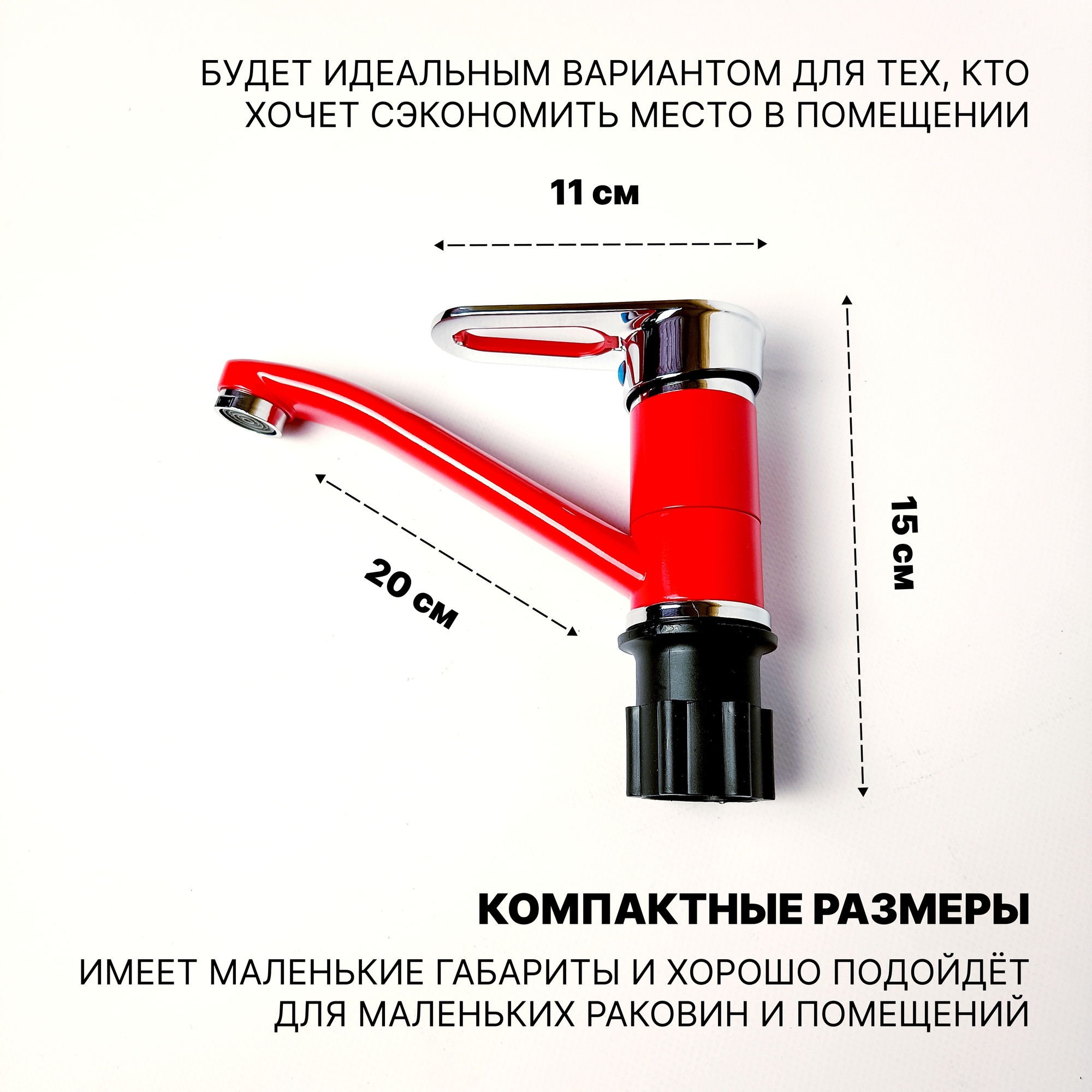 Смеситель эверест для кухни с коротким изливом, красный,