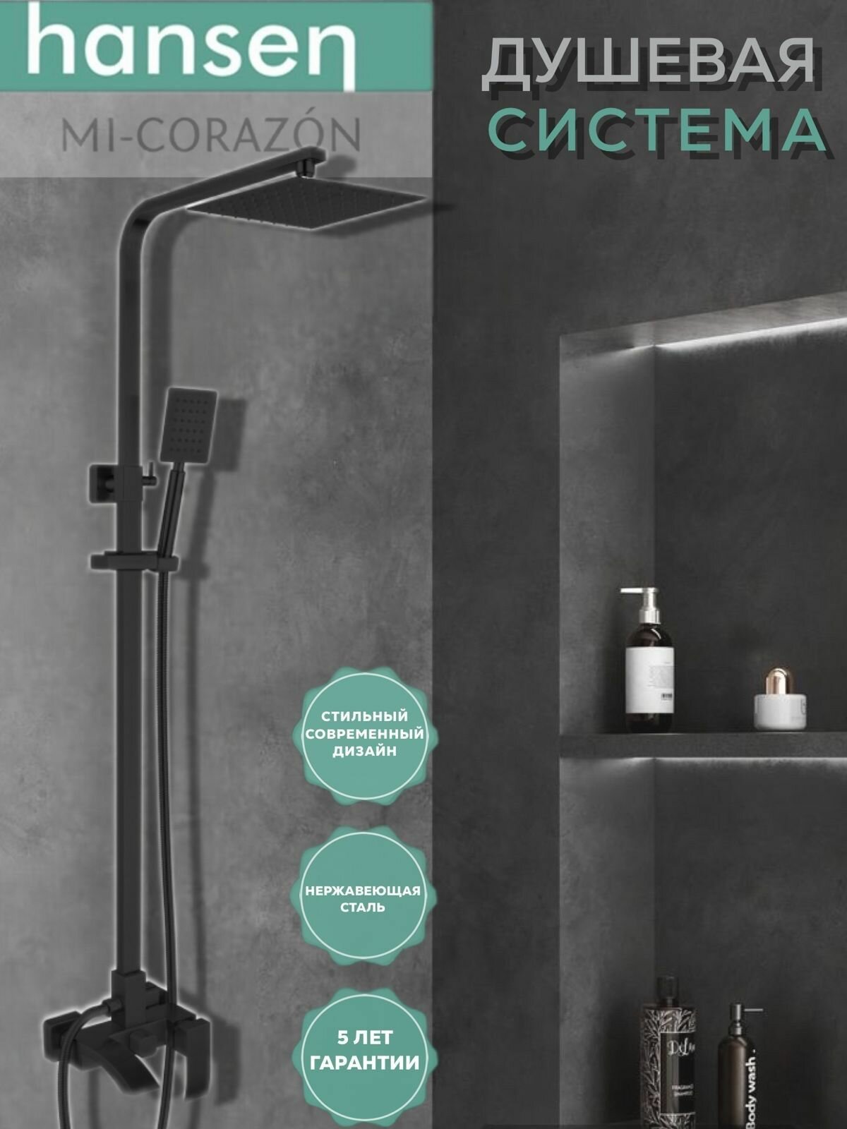 Душевая система с верхним душем HANSEN HN33044-C черный интересное: