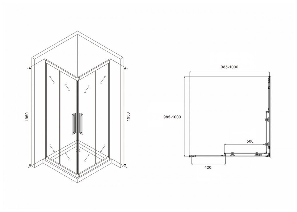 Душевой уголок Abber Schwarzer Diamant 1000х1000 мм (габариты площадки) AG02100BH
