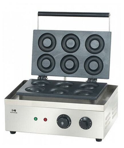 | Дополнительная информация | с антипригарным покрытием; 6 ячеек, диаметр пончика 80 мм, диаметр отверстия в пончике 35 мм; таймер; термостат; индикаторы работы |