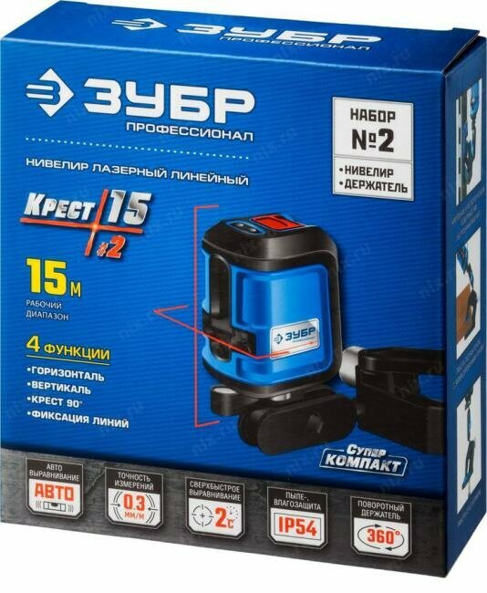 ЗУБР крест 15 нивелир лазерный, суперкомпакт, 15м, точн. +/- 0,3мм 34902_z01