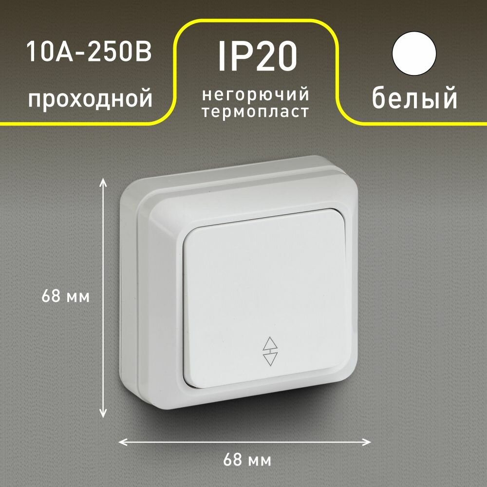 Переключатель Intro Quadro 2-103-01 одноклавишный 10А-250В, IP20, ОУ, белый