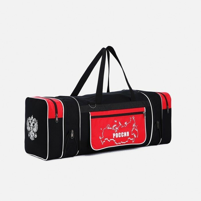 Купить Сумка дорожная на молнии, с увеличением, 3 наружных кармана, длинный ремень, цвет чёрный-красный