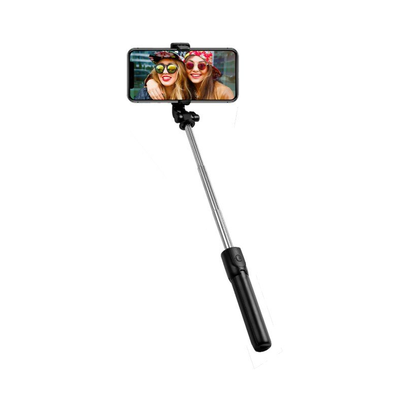Монопод-трипод для селфи R1S, штатив трипод с регулируемым держателем для телефона и Bluetooth пультом, черный