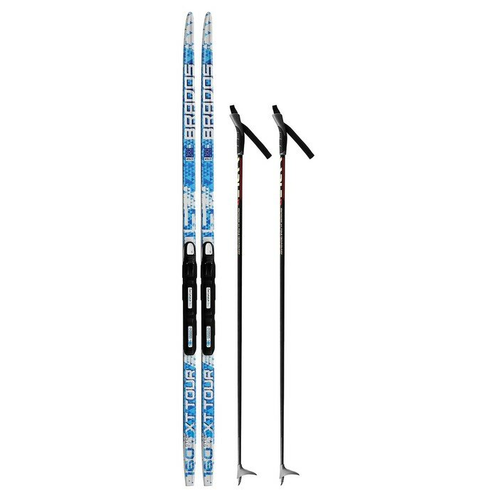 Бренд ЦСТ Комплект лыжный: пластиковые лыжи 160 см с насечкой, стеклопластиковые палки 120 см, крепления SNS, цвета микс интересное: