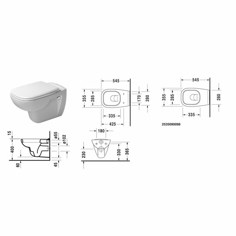 Унитаз Duravit D-CODE подвесной 355x545мм с вертикальным смывом 25350900002