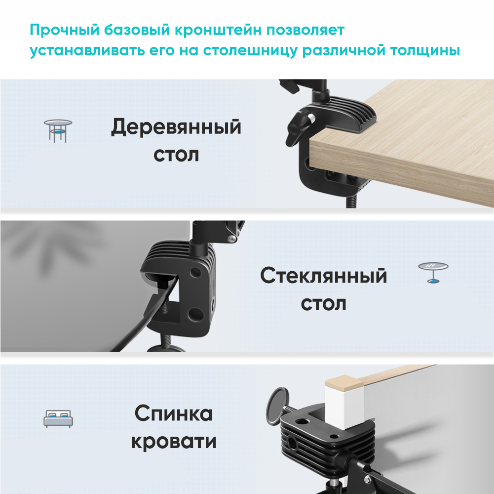 | Минусы: | Основная "ось" что вставляется в саму струбцину сделана из листа, и если крепко закрутить то погнется, и в свою очередь шевелить в лево и право станет проблемой. А также из-за короткого пальца для держателя смартфона оформить это как "руку для изголовья" кровати было проблемой, пришлось родной держатель смартфона поменять на краба от китайской держалки |
