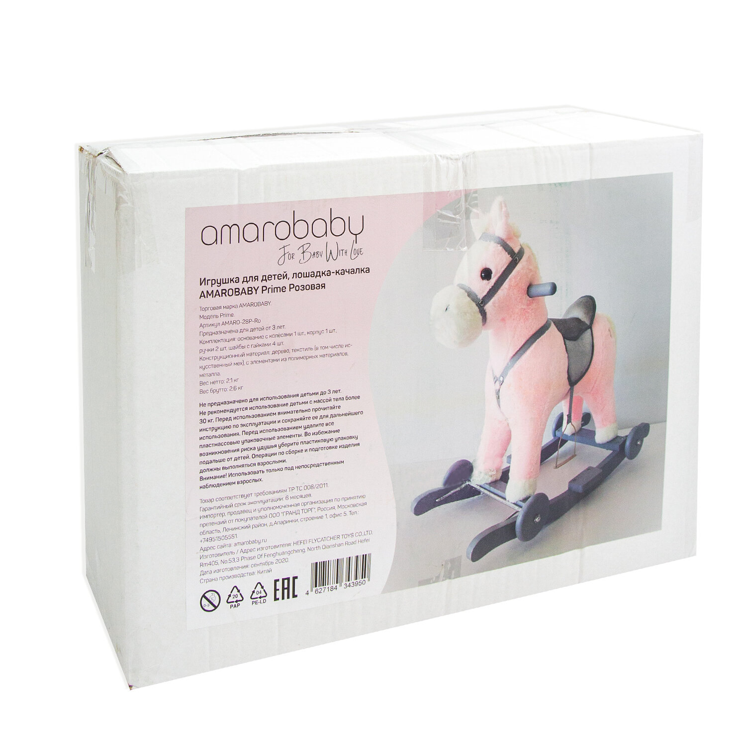 | Минусы: | Внимание лошадка из ПЕНОПЛАСТА))) очень маленькая, не соответствует указанной возвратной категории, максимум до 2х лет, но на коробке и в описании эксплуатация с 3х лет. |