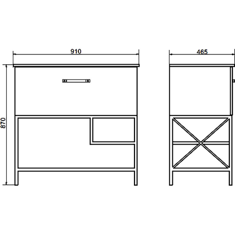 | Комплектация | 2 ящика, 1 полка, 2 ручки для ящиков, раковина Quadro 90 |