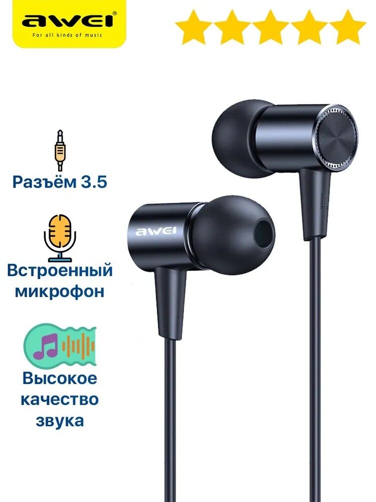 Проводные наушники Awei L2 Super Bass Sport Wired Earphones Black интересное: