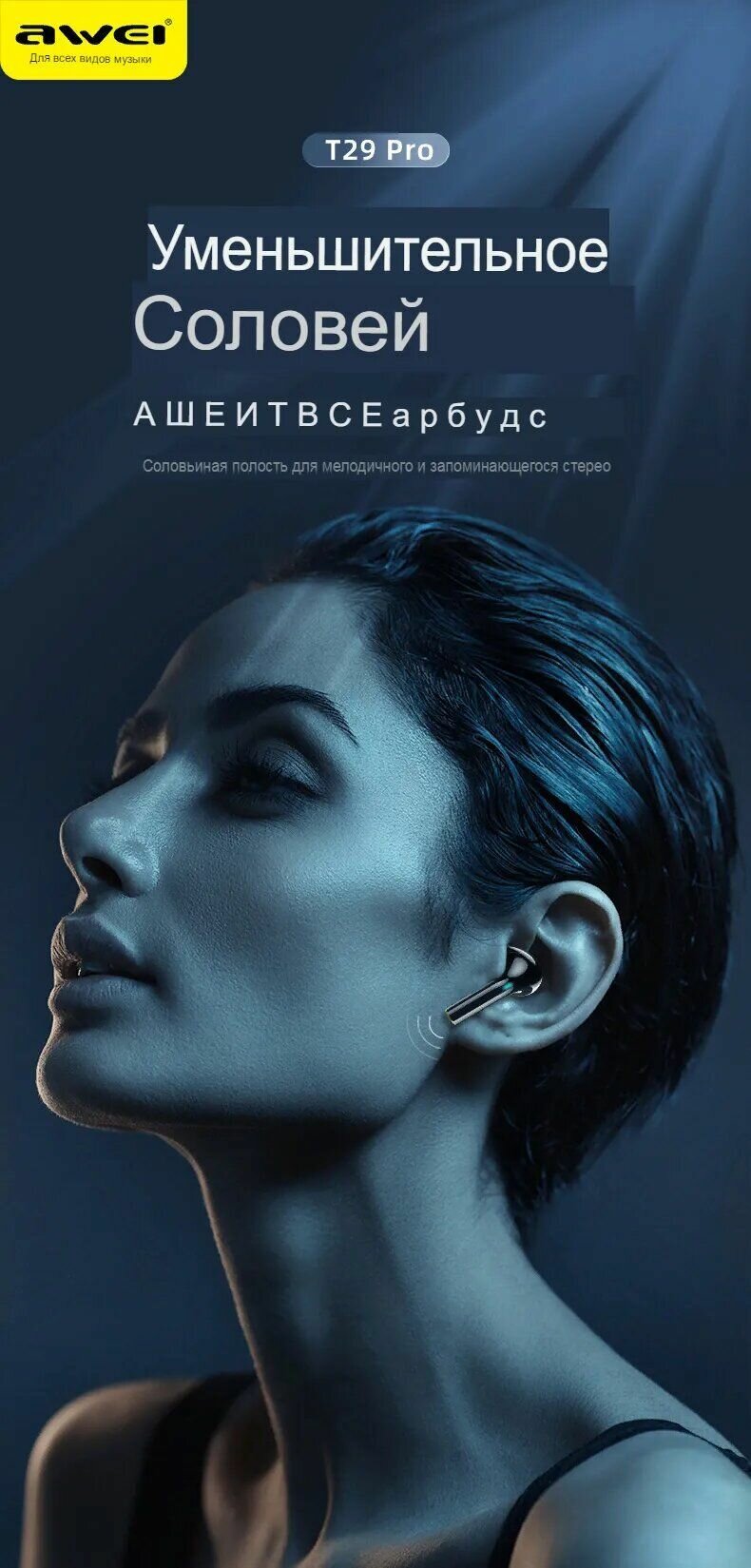 Ниже Вы можете прочитать отзывы на Беспроводные наушники Awei t29 pro, ознакомится с подробными характеристиками, посмотреть интересные обзоры и фотографии на Беспроводные наушники Awei t29 pro.
