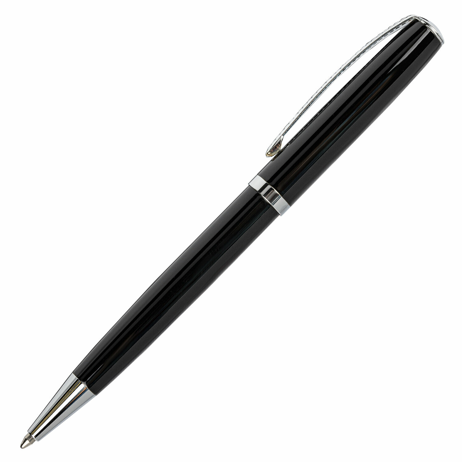 Ручка шариковая автоматическая Brauberg Cayman Black (бизнес-класса, корпус черный, серебристые детали, синий цвет чернил) (141410)