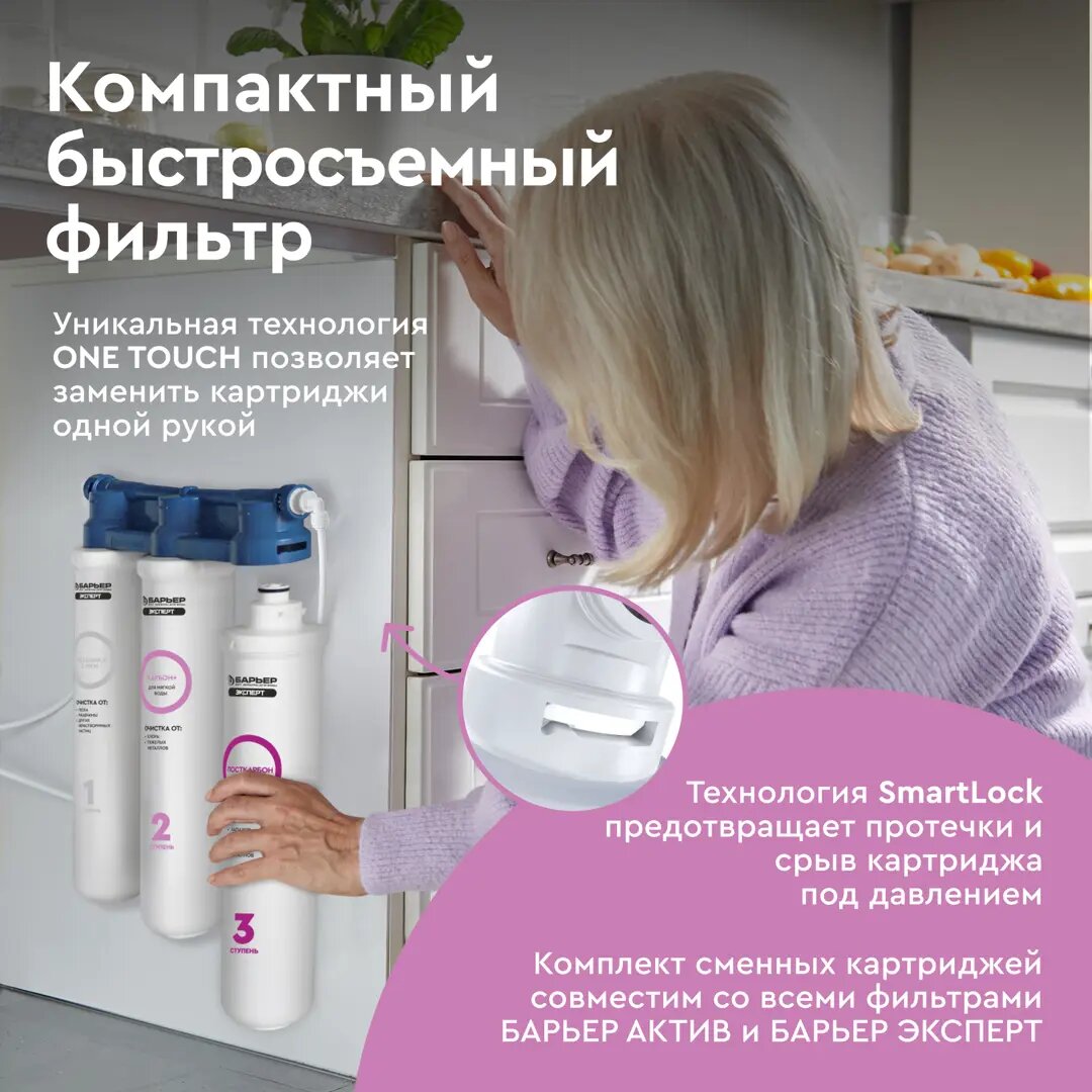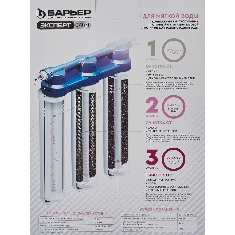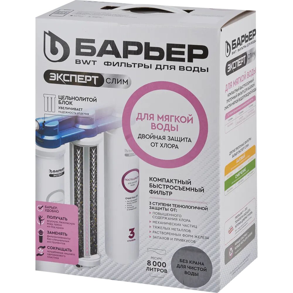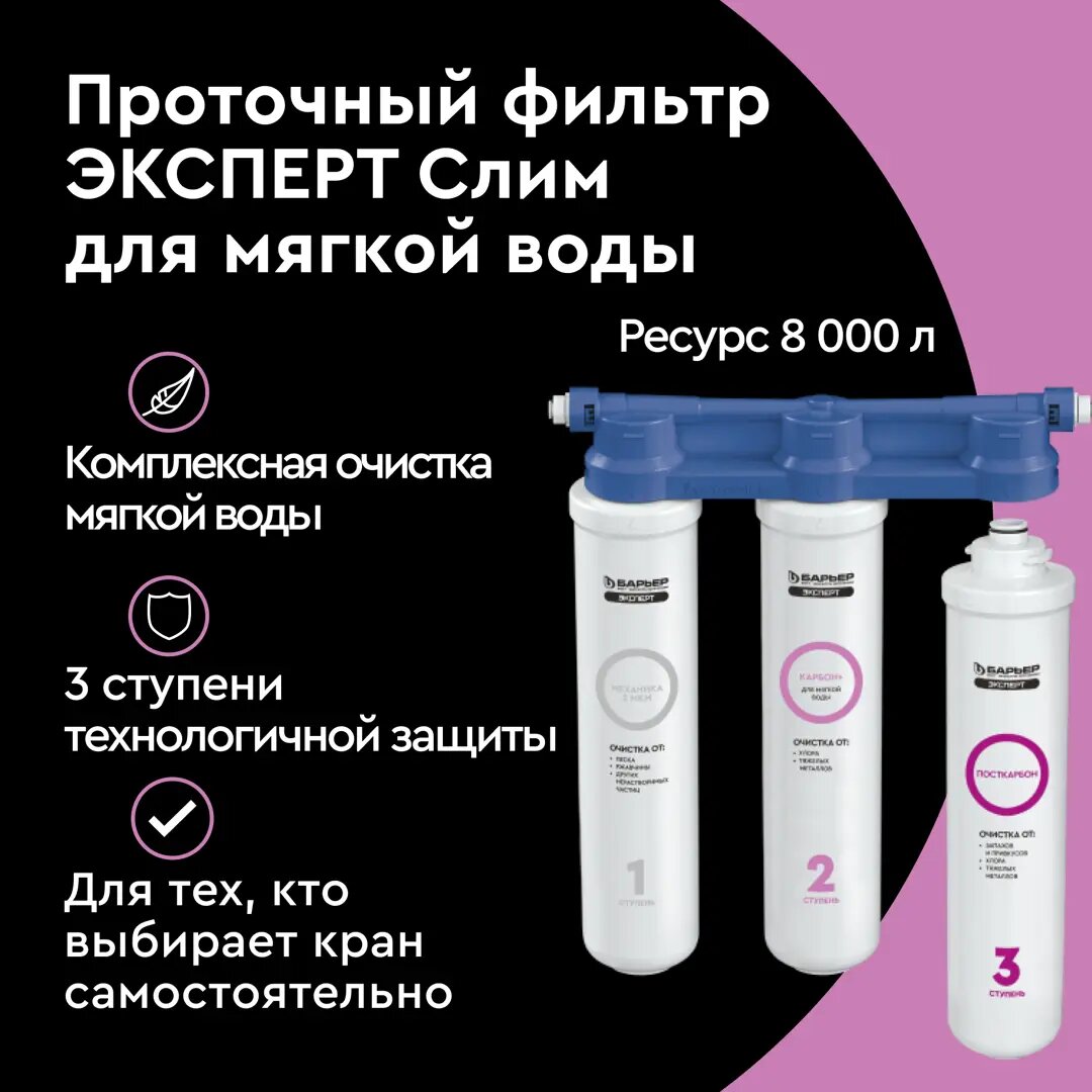 Фильтр под мойку Барьер Эксперт Slim для мягкой воды 3 ступени без крана интересное: