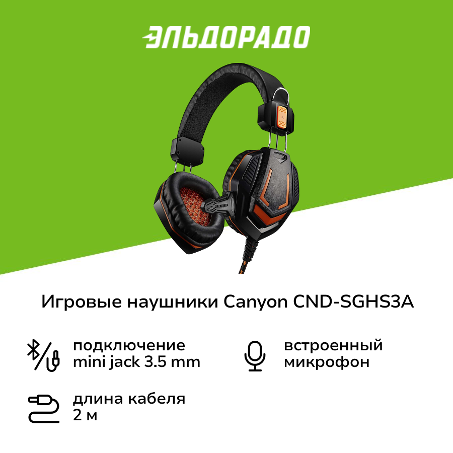 Наушники Canyon CND-SGHS3A игровые, с микрофоном, чёрно-оранжевый
