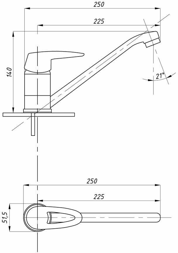 Смеситель для кухни (мойки) TSARSBERG TSB-640-1177 , силумин, фиксированный излив, управление рычажное