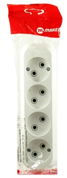 Колодка электрическая 4 розетки Makel 10 А 250 В 2,2 кВт белая (MGP141)
