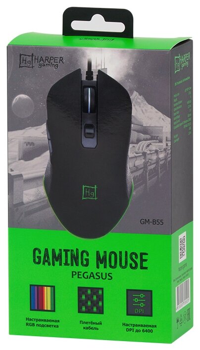 Мышь Игровая Harper Gaming Pegasus GM-B55 с настраиваемой LED подсветкой / симметричный дизайн