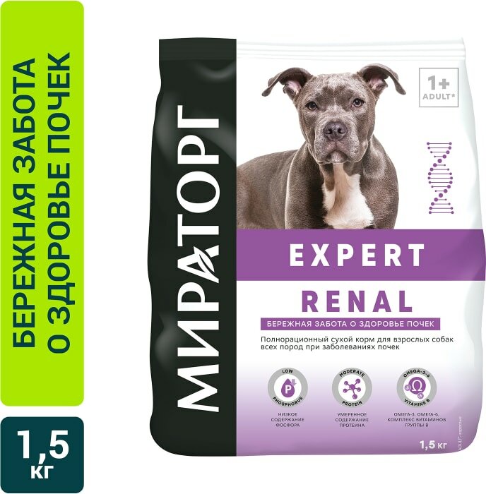 Купить Мираторг сухой корм для взрослых собак всех пород Expert Renal при заболеваниях почек, 1,5 кг
