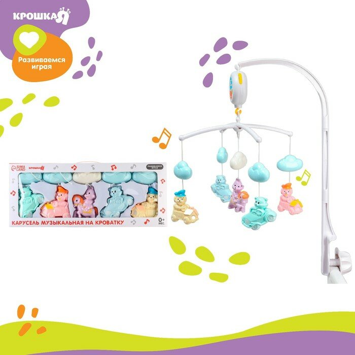 Мобиль музыкальный Облака. Машинки, работает от батареек интересное:
