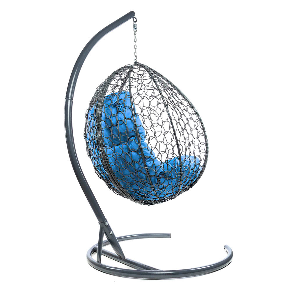 Подвесное кресло из ротанга "Капля" серое с голубой подушкой M-Group