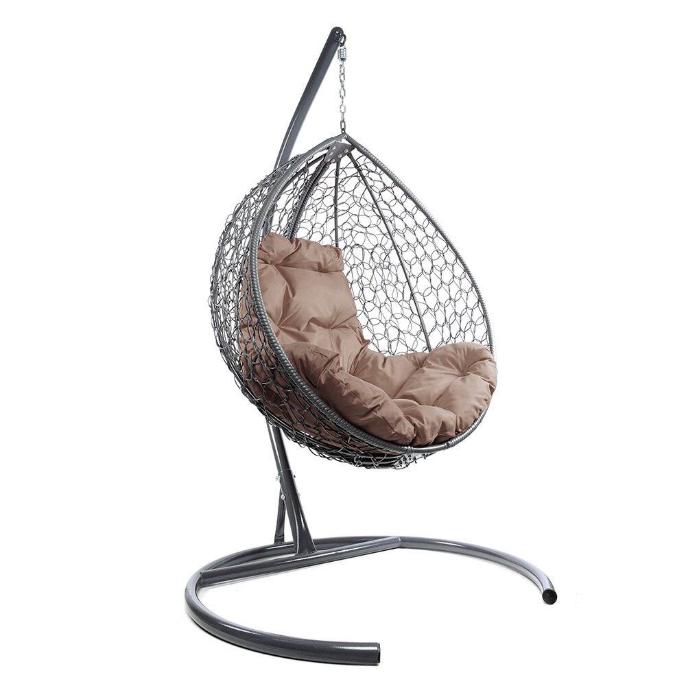 Подвесное кресло M-Group капля ротанг серое, коричневая подушка
