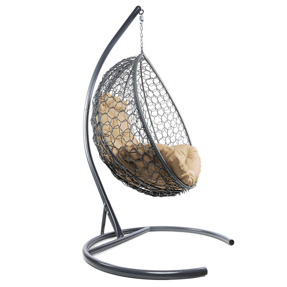 Подвесное кресло M-Group капля ротанг серое, бежевая подушка