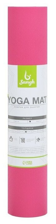 Коврик для йоги Sangh Sun, 183х61х0,6 см, цвет розовый