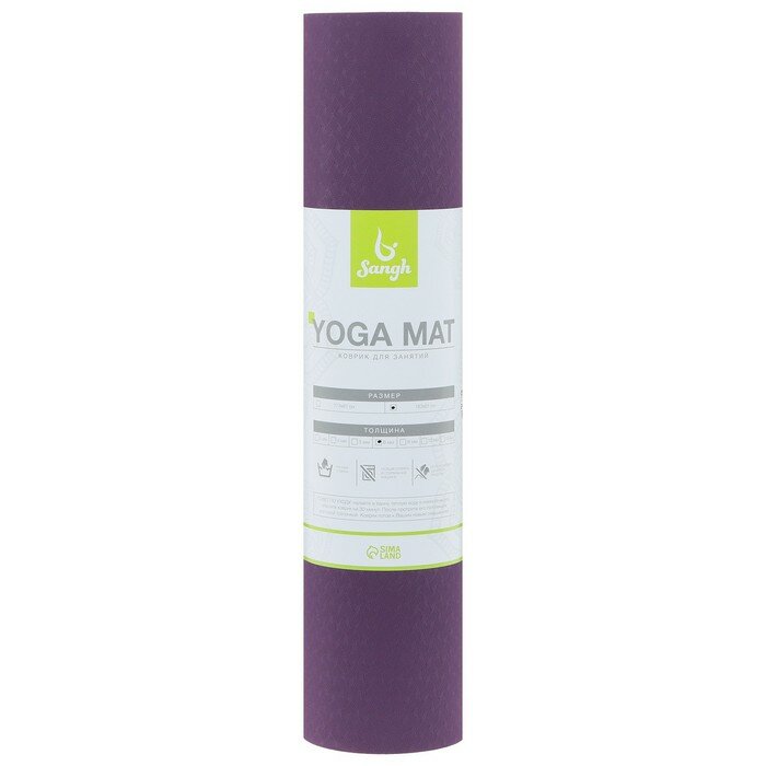 Sangh Коврик для йоги 183 х 61 х 0,6 см, цвет фиолетовый