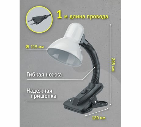 СохранитьСветильник настольный Navigator 61 639 NDF-C011-60W-WH-E27 прищепка, белый интересное: