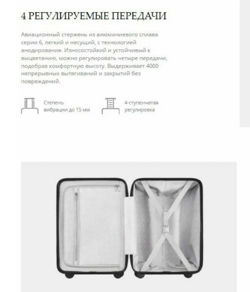 | Плюсы: | Чемодан 45х25х65 65см это высота с колёсами, но без ручки. Высота корпуса изнутри - 60см. Вес - 3950г. Нигде не написано Xiaomi, только на колёсах - ninetygo.