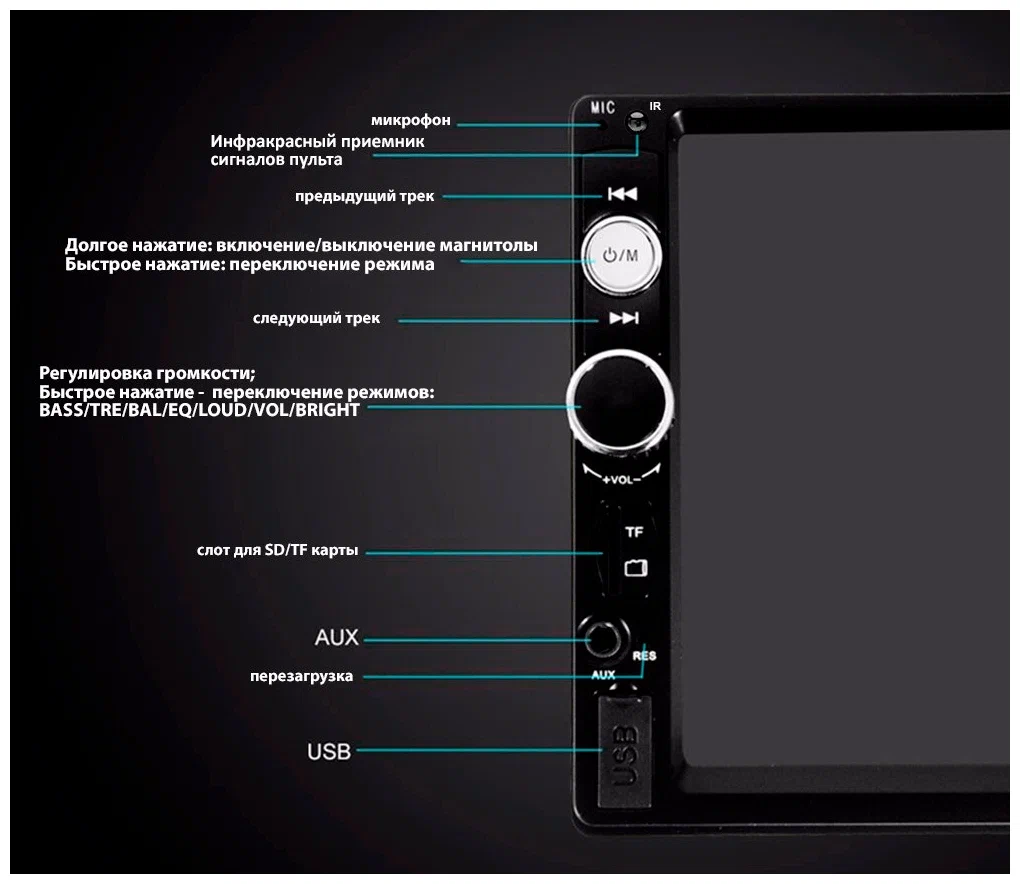 Автомагнитола 7010B 2din 7" дюймов + мультируль (bluetooth, USB, AUX, MP5)