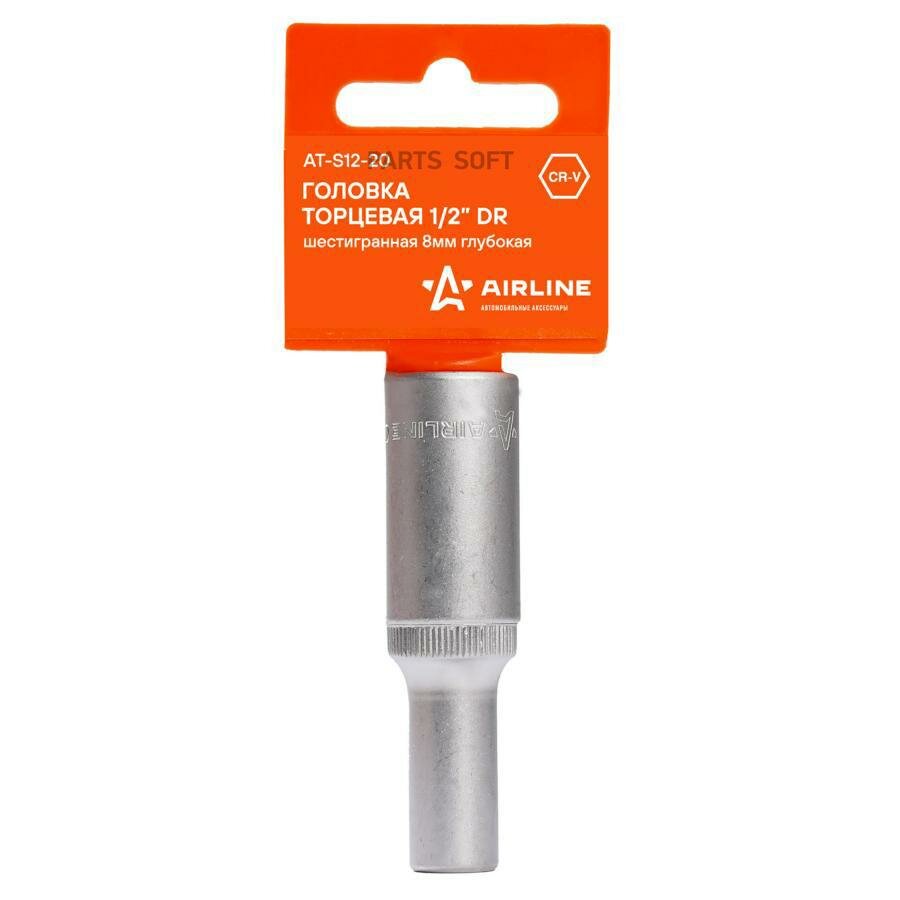ATS1220 AIRLINE Головка торцевая 1/2 DR шестигранная 8мм глубокая в пакете (AT-S12-20)