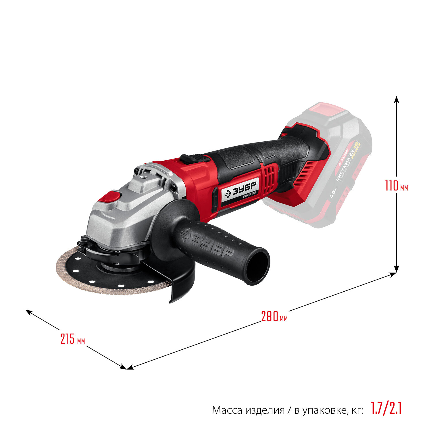 Купить УШМ ЗУБР УШМ-18-125, 18 В, защита от непреднамеренного пуска