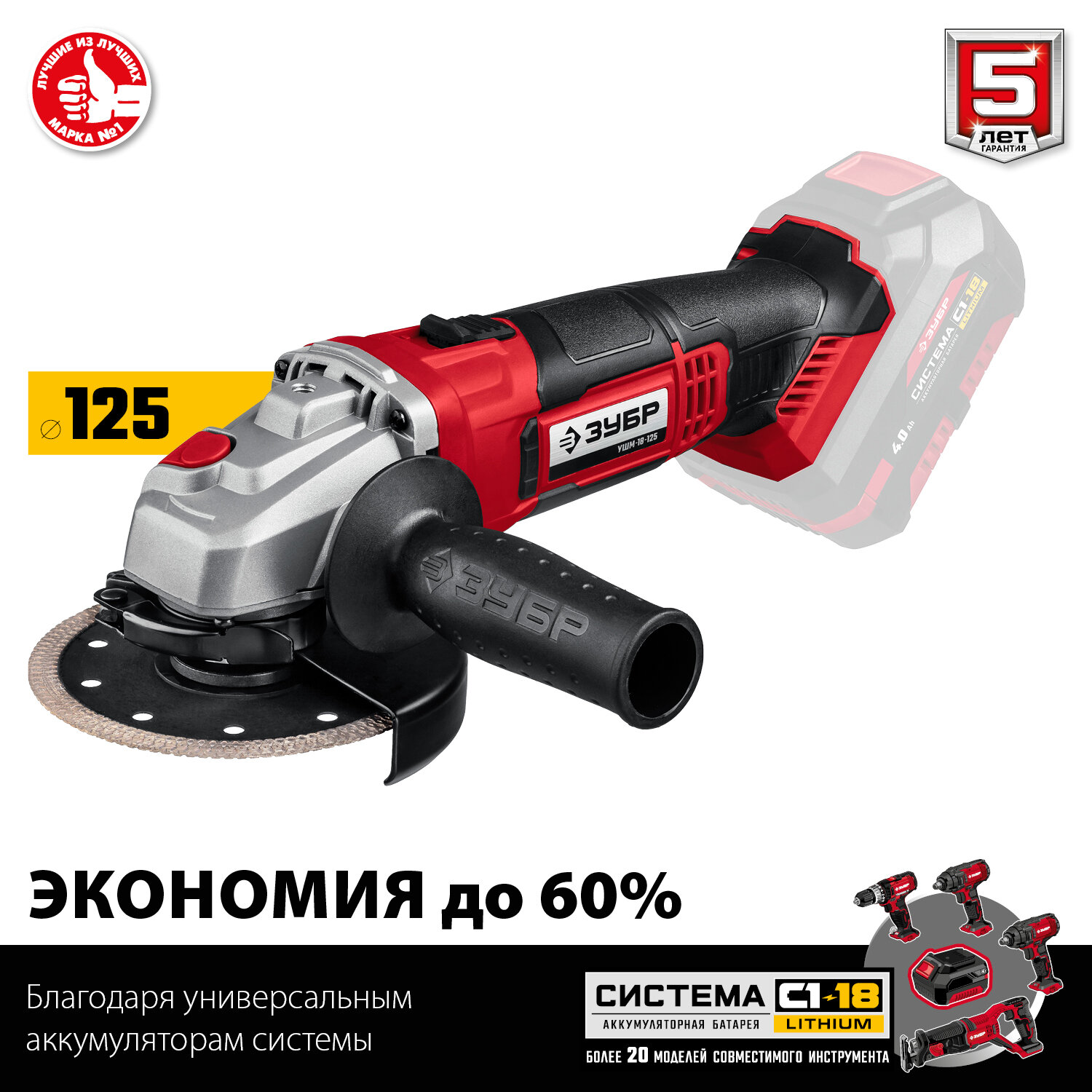 УШМ ЗУБР УШМ-18-125, 18 В, защита от непреднамеренного пуска интересное: