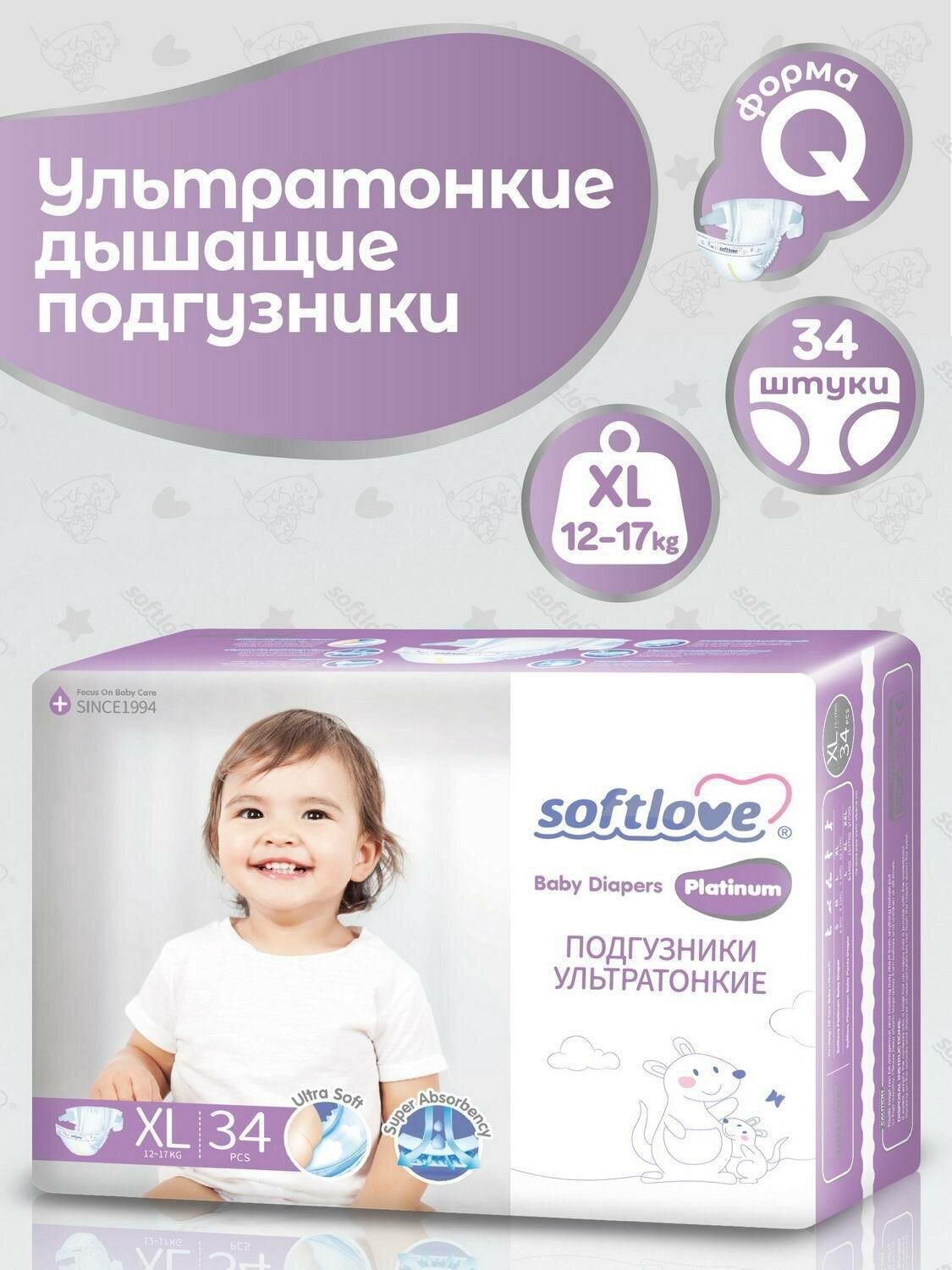 Подгузники Softlove-Platinum XL (12-17кг) 34шт