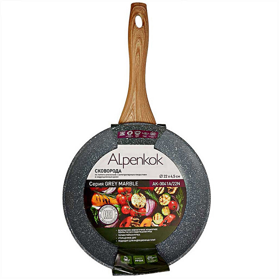 Купить AK-0041A/22N Сковорода алюмин. ALPENKOK с антипригар. покрытием "GREY MARBLE", индукц. d=22см (6)