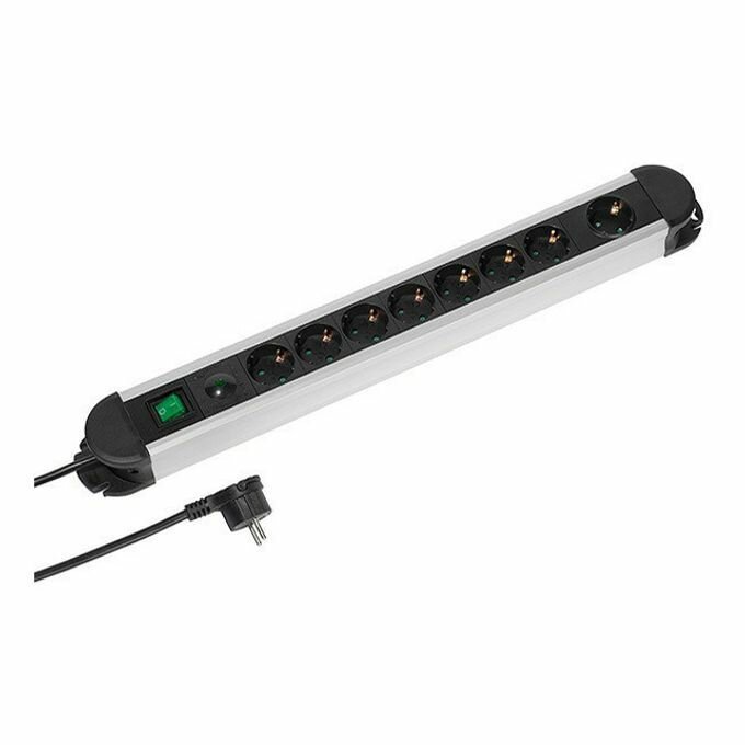 Сетевой фильтр серии Alu-EPLS 7 с заземлением и защитой от перенапряжения 8 розеток, 2 метра, чёрный цвет Vivanco 37661