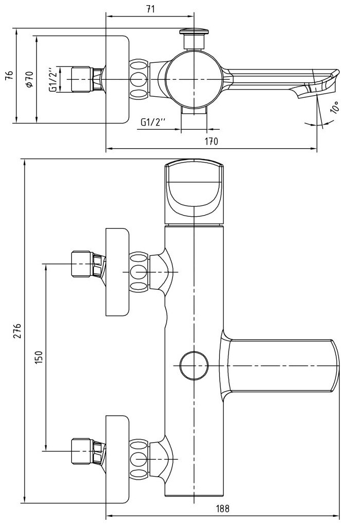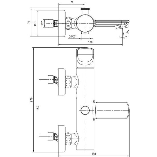 E.C.A. Смеситель E.C.A. Myra 104502470EX для ванны с душем
