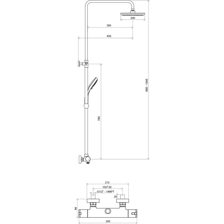 | Дополнительная информация | высота стойки для душа: 1340 мм; диаметр верхнего душа: 200 мм |