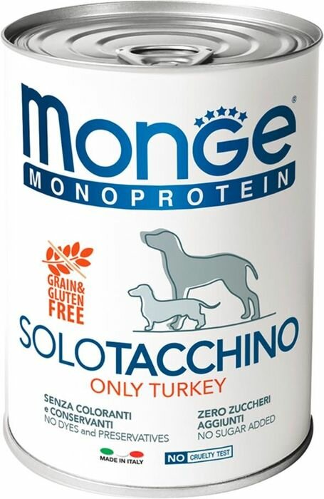 Корм для собак MONGE Dog Monoproteico Solo паштет из индейки конс. 150г*24 (упаковка - 24 шт)
