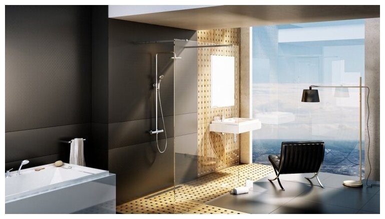 | Плюсы: | Удобная стойка, две лейки, легко регулируется,термостатический смеситель.