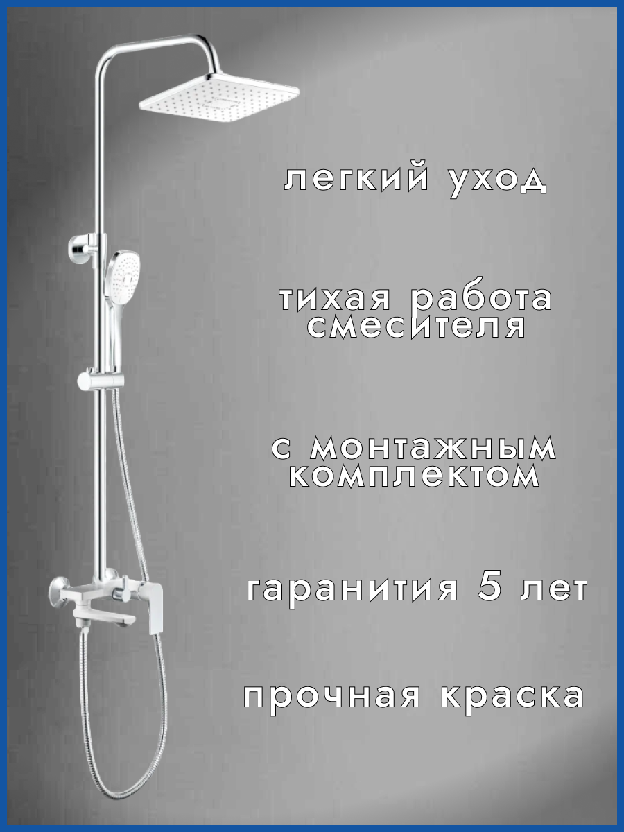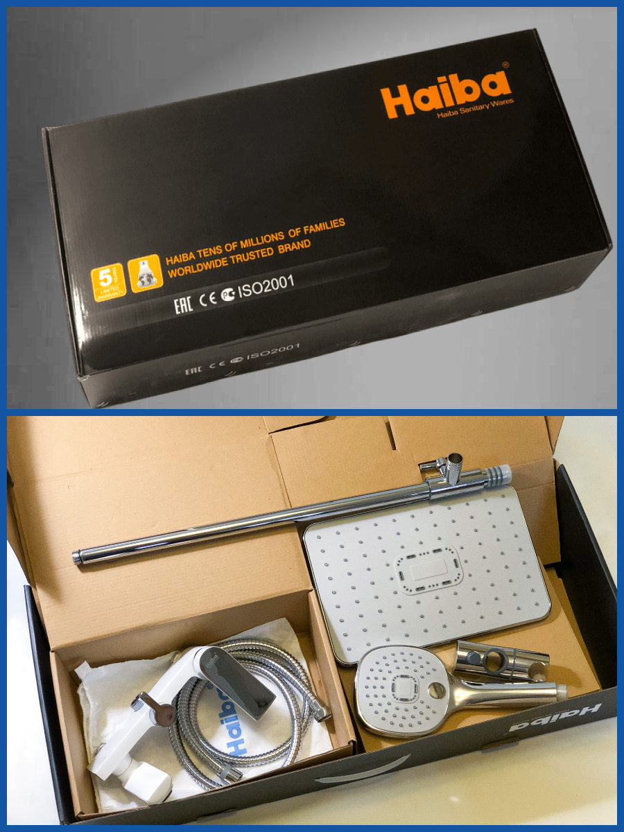 | Комплектация | верхний душ / штанга для верхнего душа / ручной душ / держатель для ручного душа / Смеситель / шланг / крепления / смеситель для раковины |